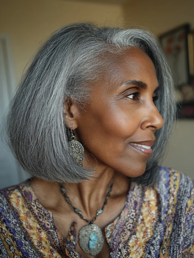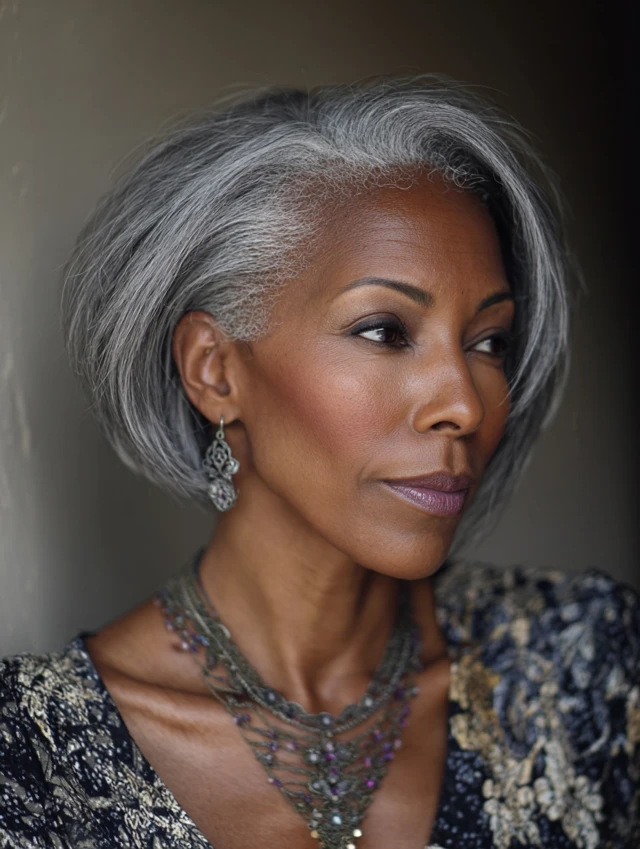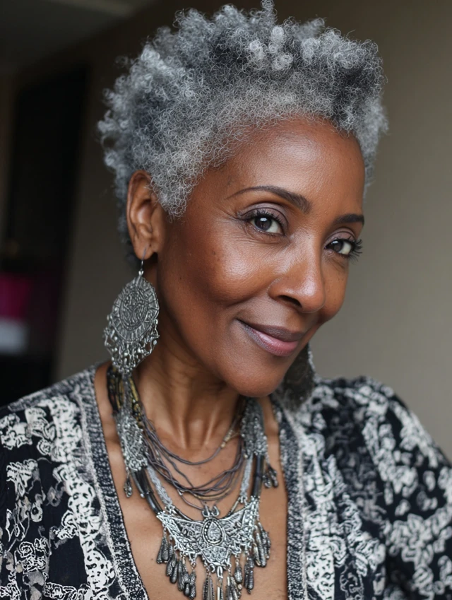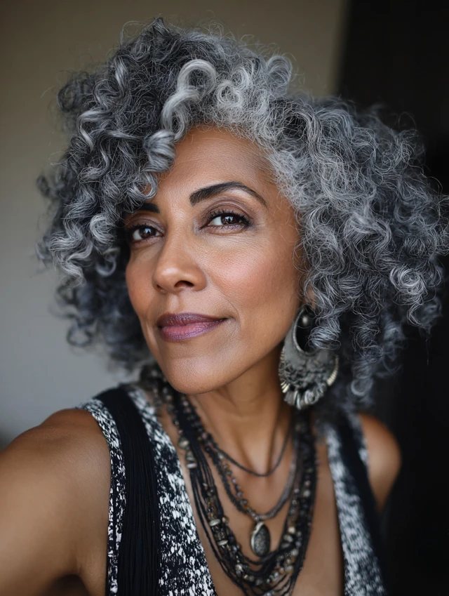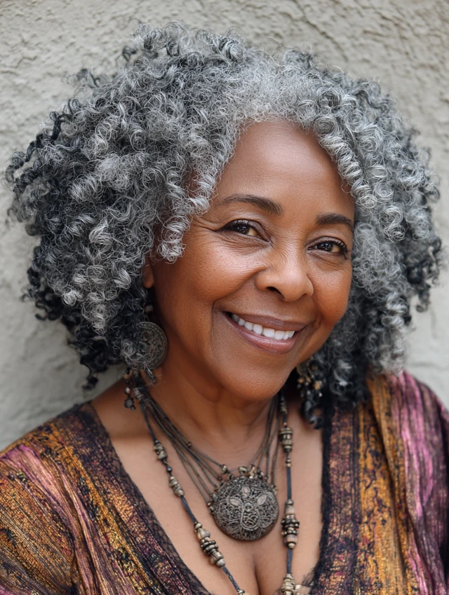 Natural gray hair on Black women over 50 is nothing short of stunning. Whether worn in curls, afros, locs, bobs, or tapered cuts, your silver strands tell a story of resilience, wisdom, and true beauty.