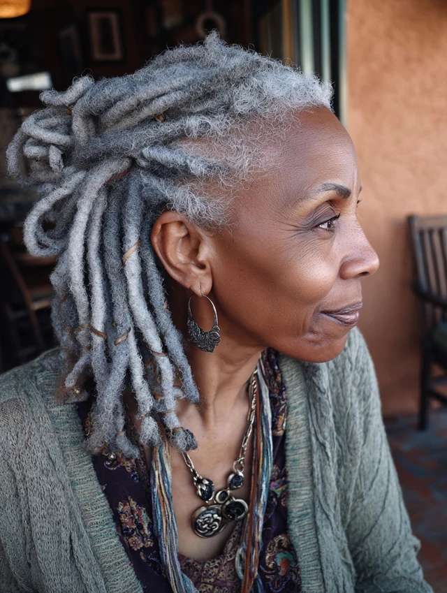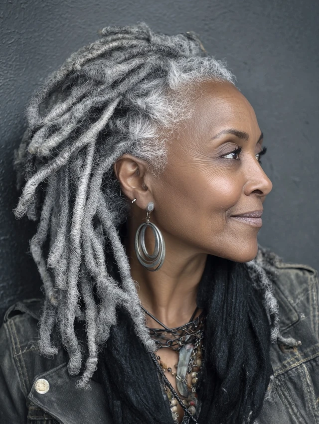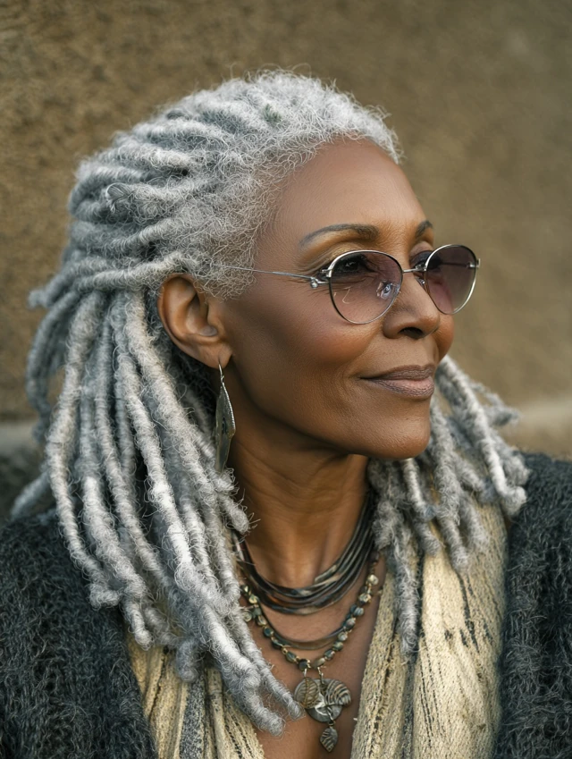 Locs turn absolutely stunning as they transition to gray—full of depth, charm, and regal presence.