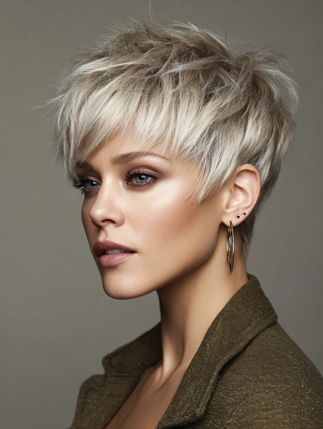 - Cuts: Pixie cuts, blunt bobs, layered lobs, or choppy crops.