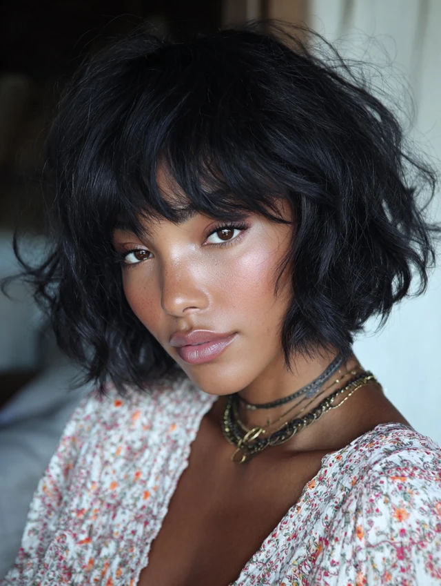 3. Wavy Bob with Wispy Bangs