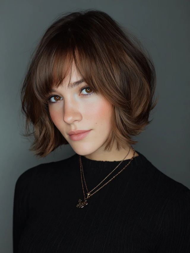 Curtain bangs or long wispy bangs pair beautifully.