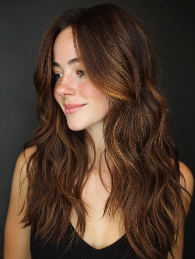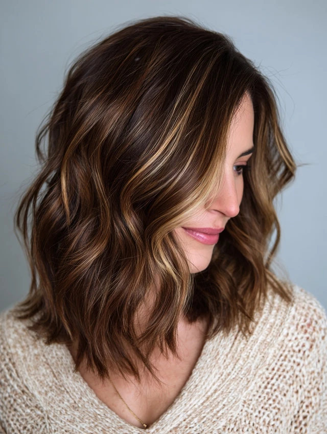 Caramel highlights on brown hair are one of the most flattering and timeless color combinations. The warm, golden-brown tones add depth, brightness, and natural-looking dimension without overpowering the base color. Whether your brown hair is light, medium, or dark, caramel highlights create a soft, sun-kissed effect that looks beautiful year-round.