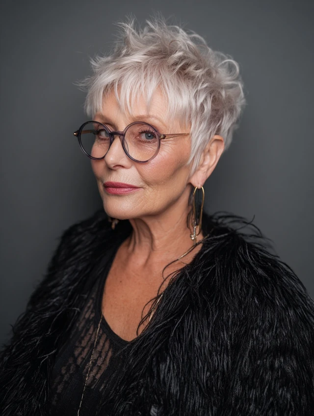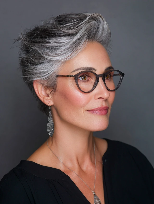 Chic short haircuts for women over 50 with glasses are easy to maintain while still looking refined and fashion-forward — perfect for everyday wear or special occasions.