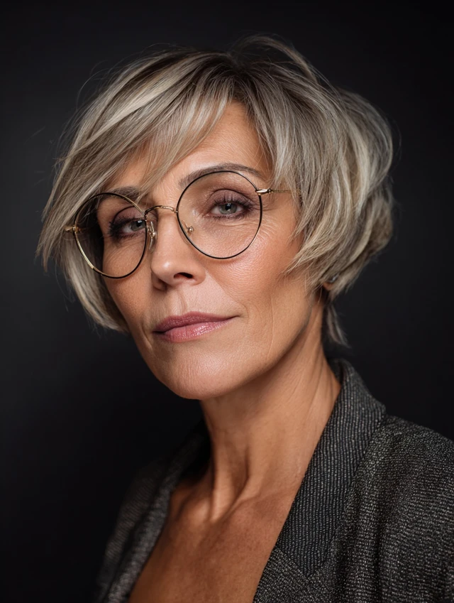 Choosing a chic short hairstyle for women over 50 with glasses helps:
