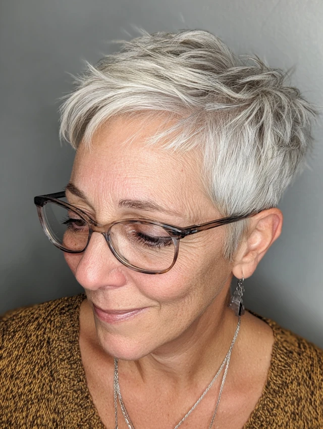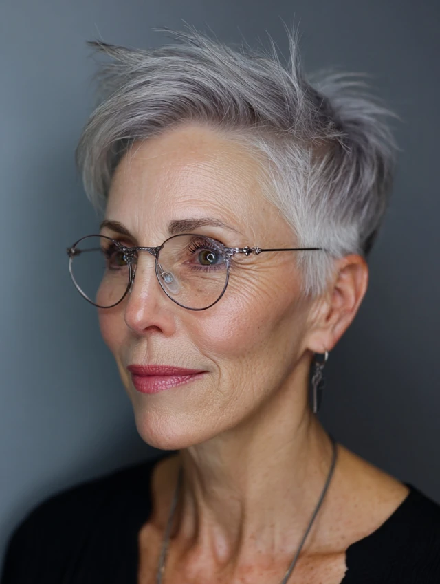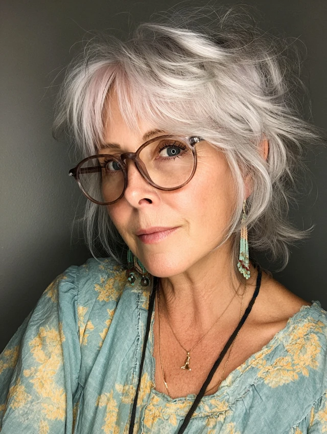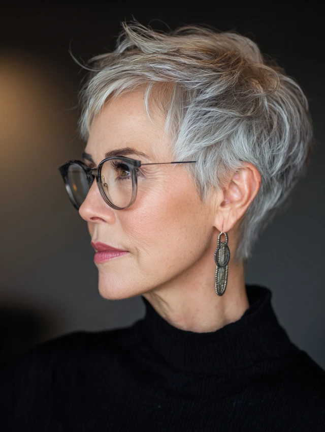 Chic short hairstyles for women over 50 with glasses offer the perfect balance of sophistication and practicality. From polished pixies and classic bobs to textured crops and soft shags, there’s a flattering option for every face shape and frame style.