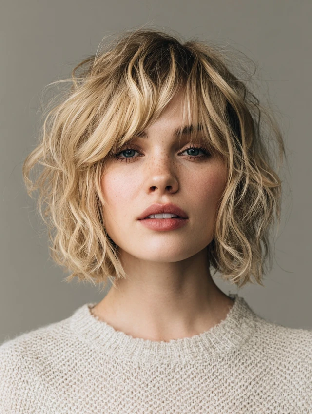 5. Wavy Choppy Bob with Textured Bangs