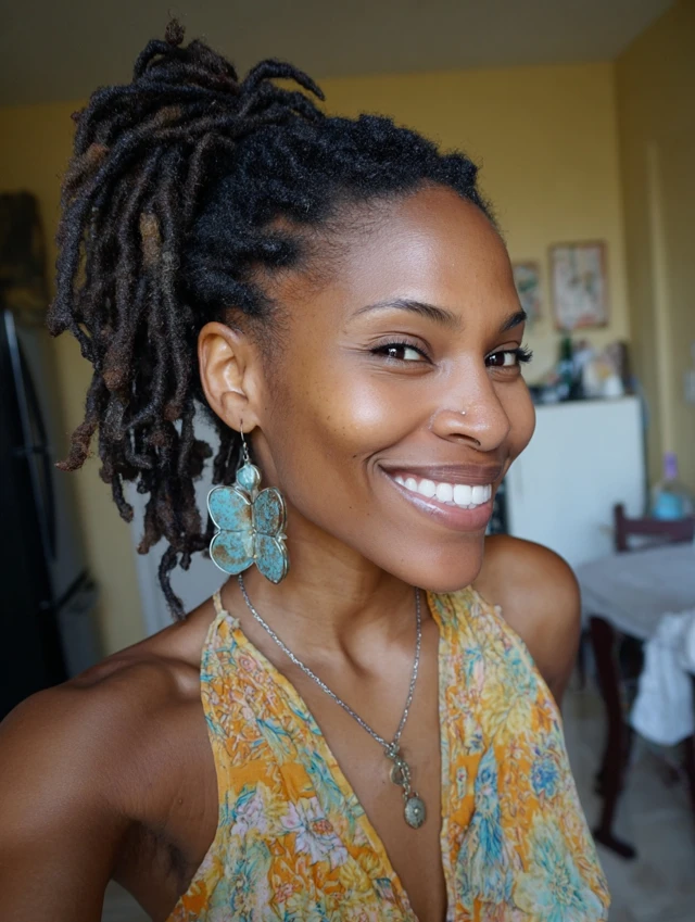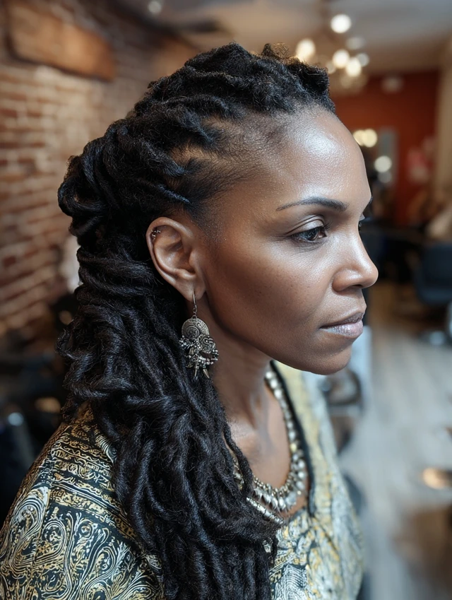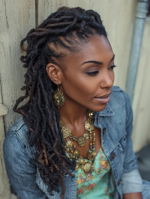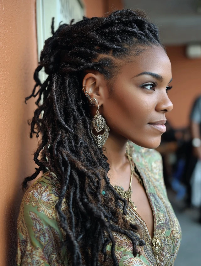 This classic style keeps hair out of your face while letting the rest of your locs flow freely—cute, balanced, and flattering.
