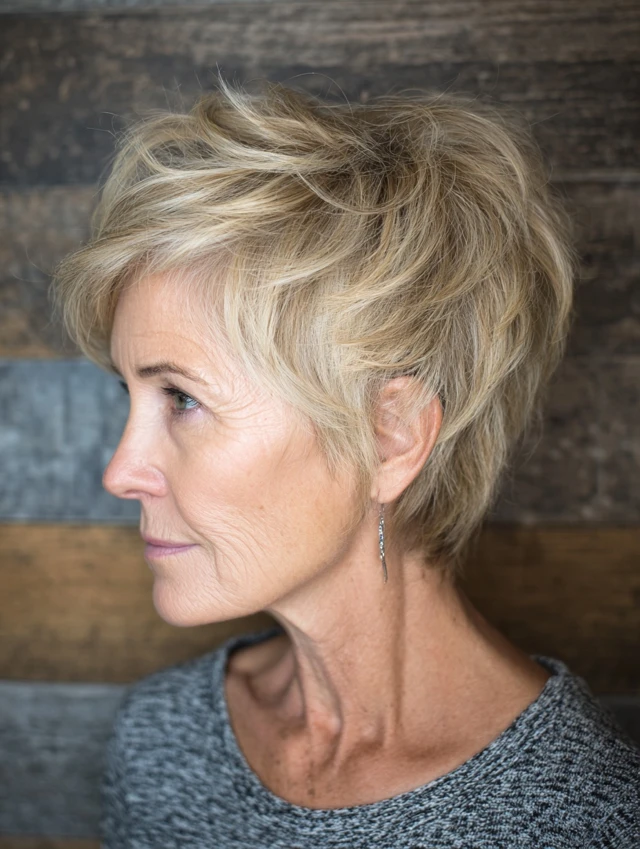 Pixie cuts lift the roots and make thin hair appear thicker.