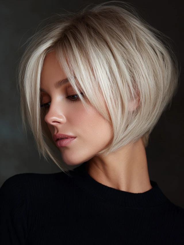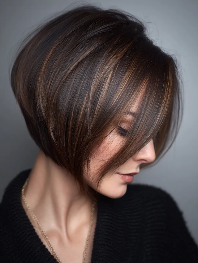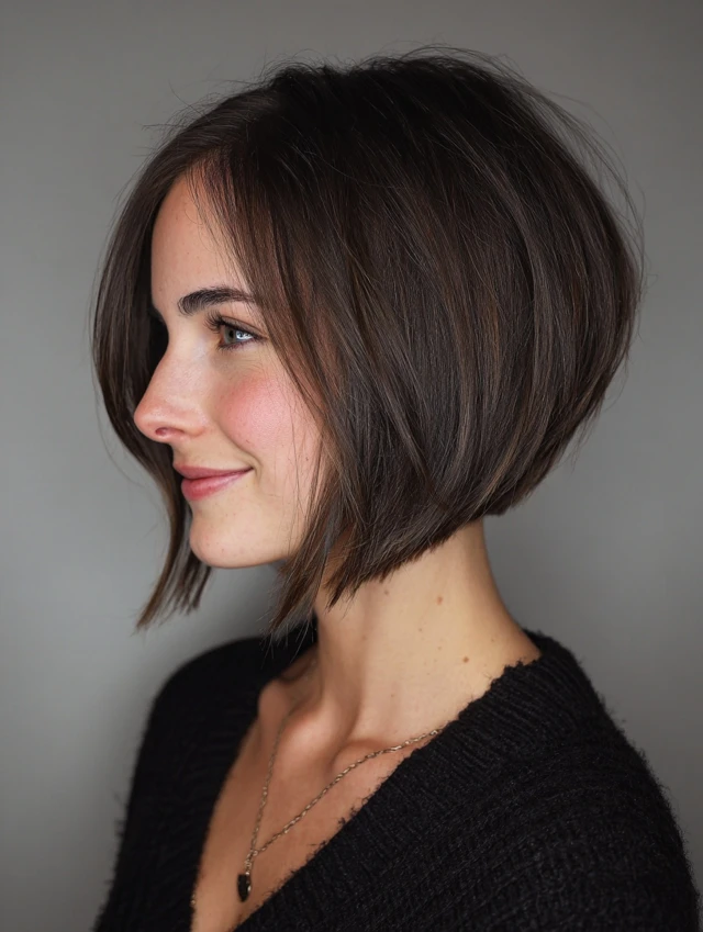The inverted bob is a haircut that commands attention. Defined by a stacked, shorter back and longer front sections, this style creates a bold, sculpted silhouette that feels modern yet classic. It’s polished without being stiff and edgy without being extreme—making it a favorite for women who want shape, volume, and confidence in one cut.