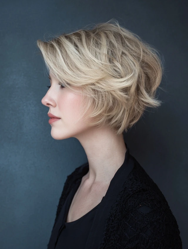 A shorter length paired with layers creates lift and a bold, confident look.