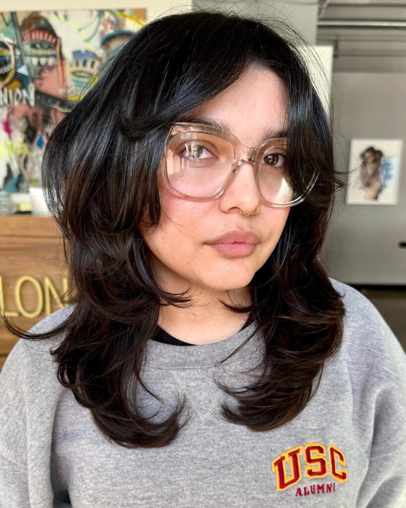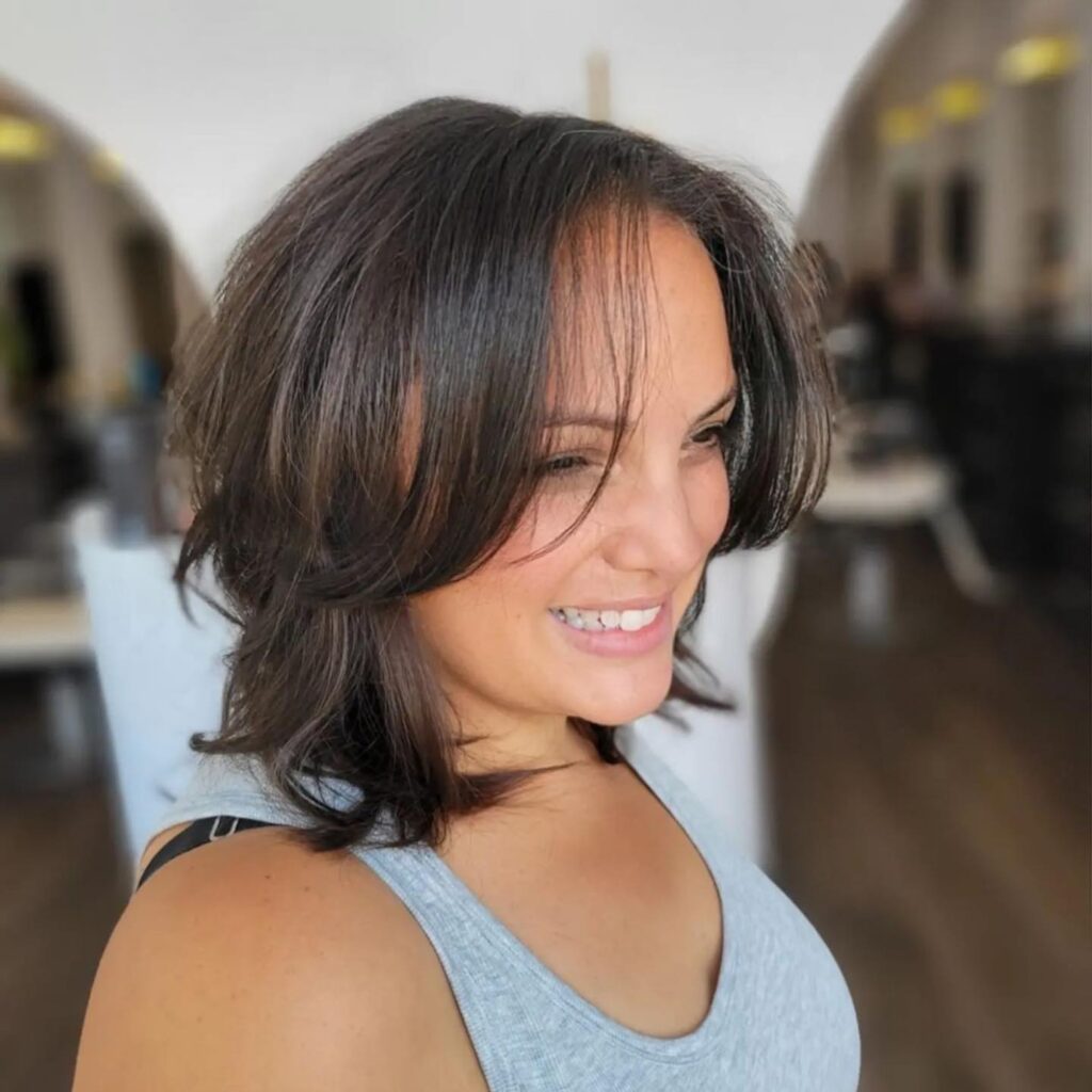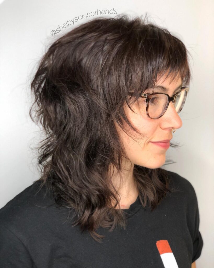 The medium shag is loved for its adaptability and wearability. It complements a wide range of face shapes and hair types.