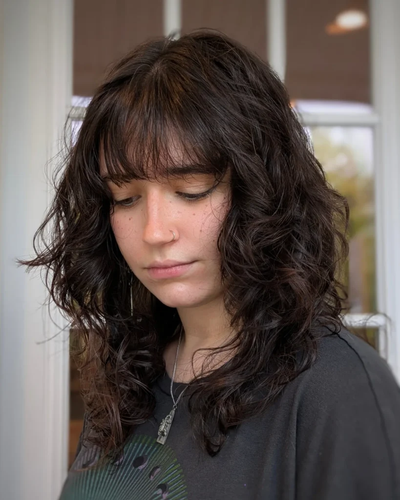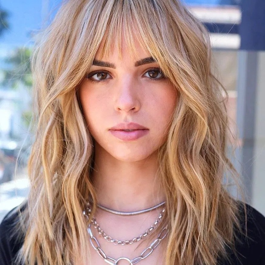 - Bangs (Optional): Curtain bangs or wispy fringe enhance the shag effect.