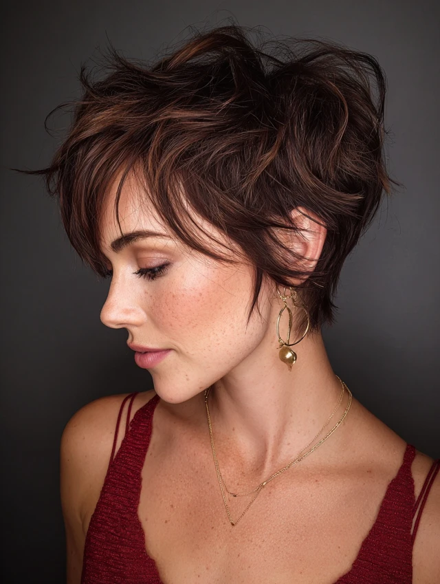 Designed for women who love low-maintenance beauty with high-impact style, the messy pixie proves that less hair can mean more personality.