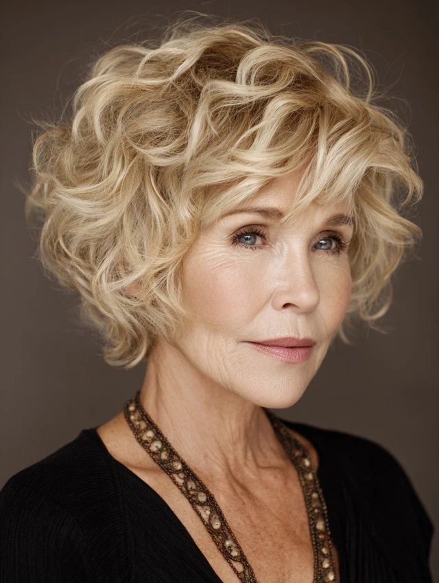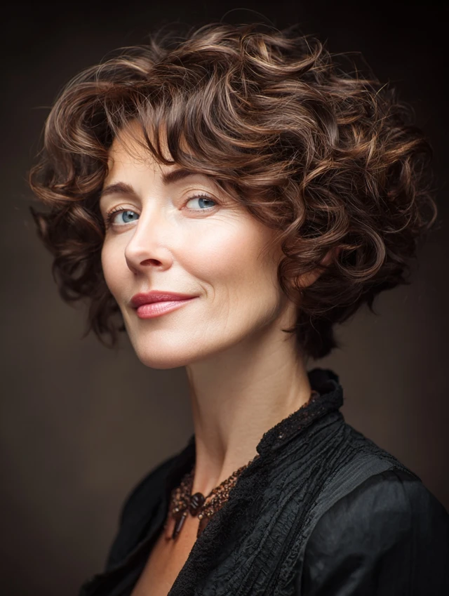 Choosing the right short curly hairstyle for women over 50 helps: