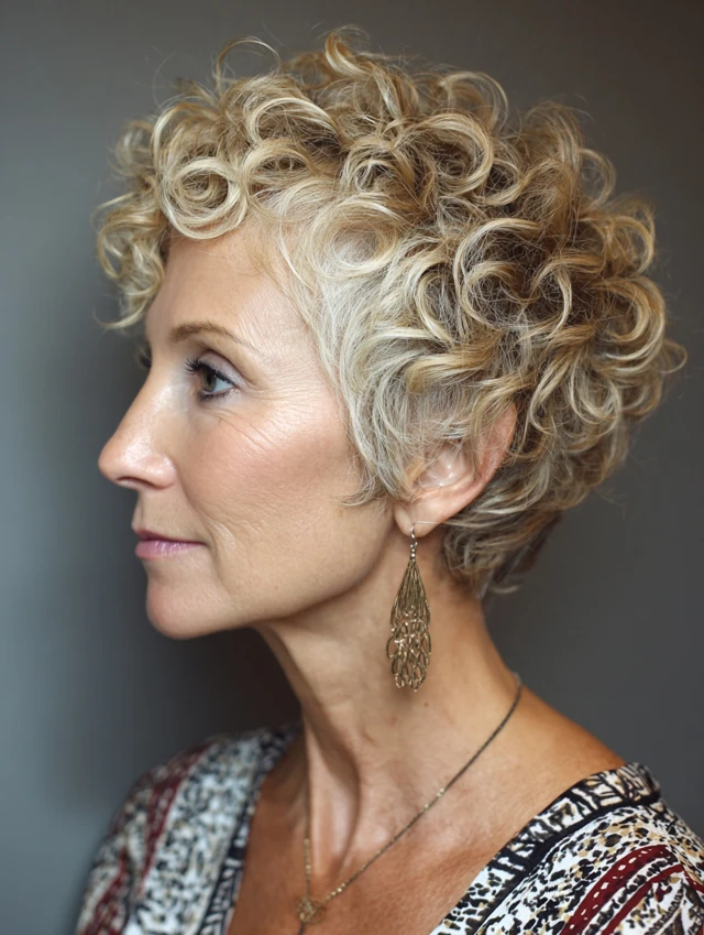 Below are stylish, flattering, and easy-to-manage hairstyle ideas perfect for women over 50 with short curly hair.