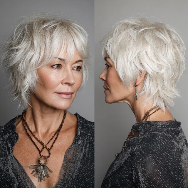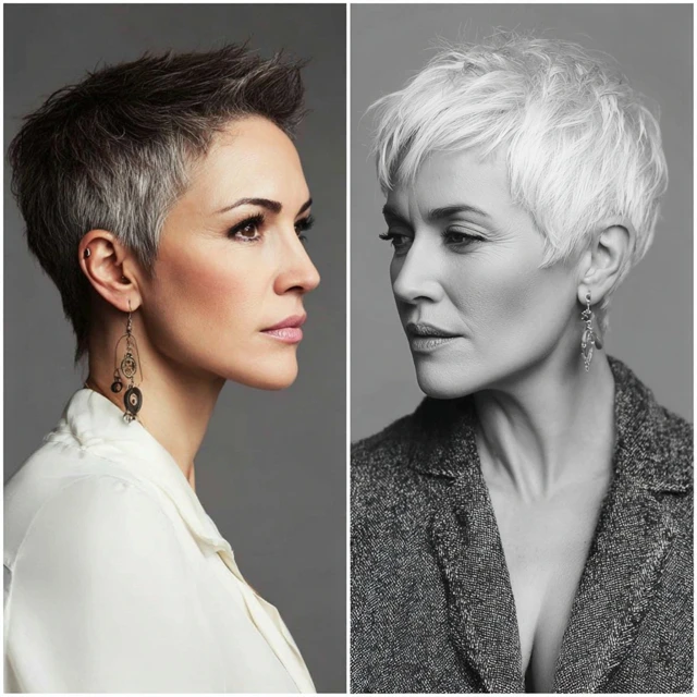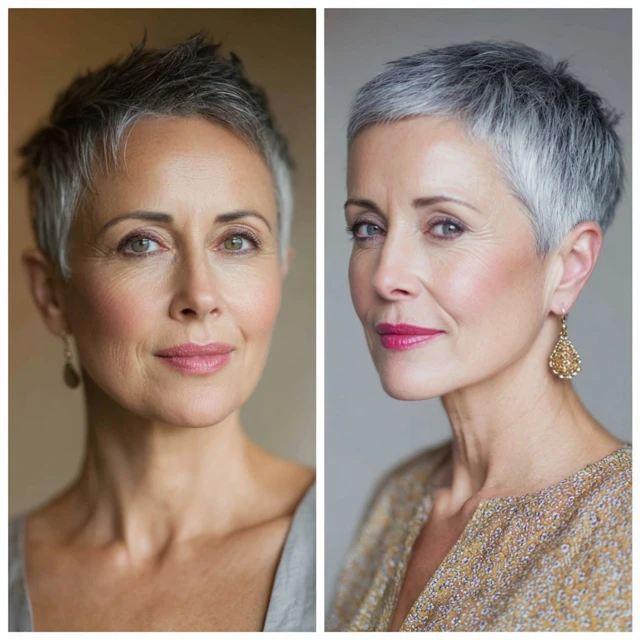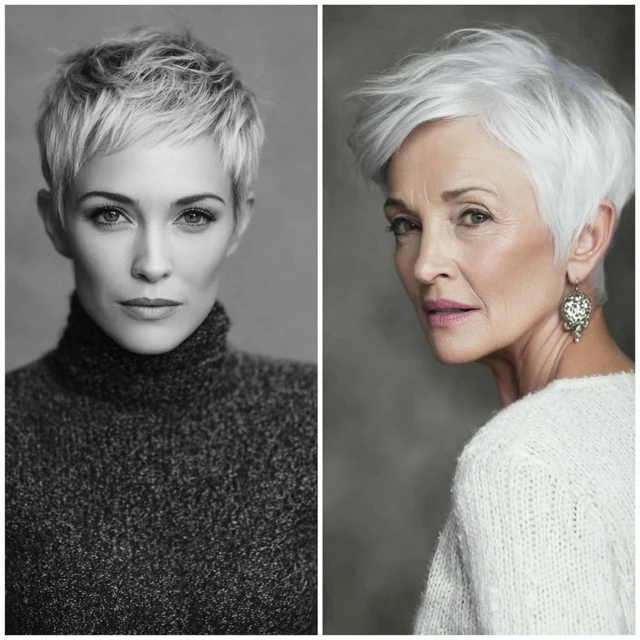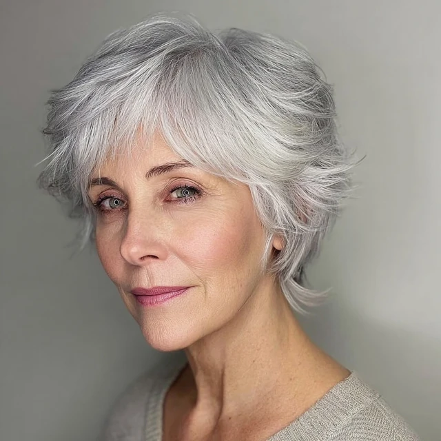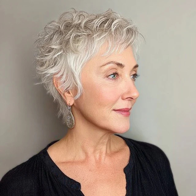 Why It Works: The pixie is timeless and chic, perfect for women who want a no-fuss, modern look. It highlights facial features beautifully and works well with gray or silver hair.