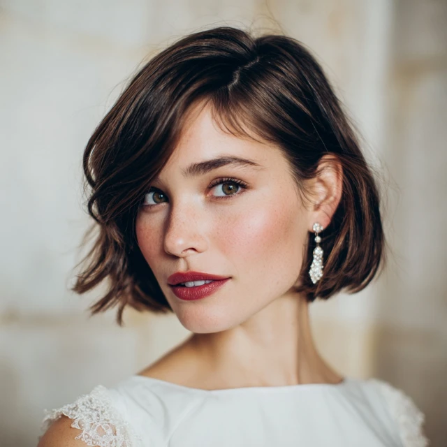 Wedding days are long—ceremony, photos, reception, and dancing. The good news? Short styles hold up beautifully with minimal touch-ups.